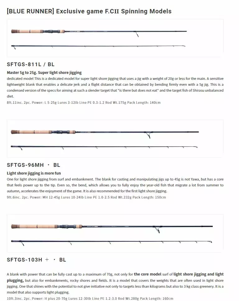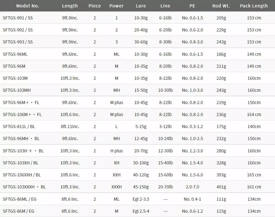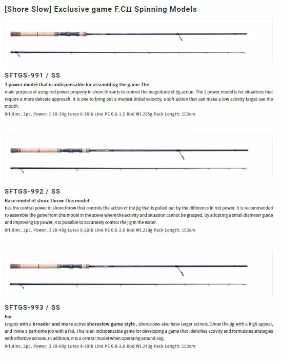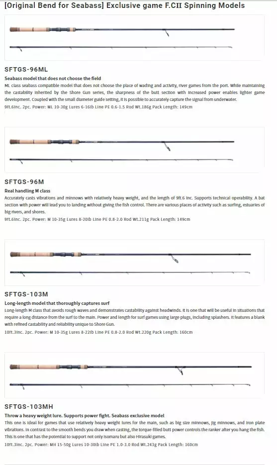 The Shore Gun Evolve lineup, which consists of categorization by target-style inshore casting games, is always at the forefront of the game scene. A total of 17 models cover bluefish, sea bass, flatfish, shore throw, and even egging. We will continue to evolve by refining the performance required for each game. Evolve at the end of Evolve. Please experience its performance. The Shore Gun Evolve blank uses a highly elastic material in place around the butt section. The sharp cast feel and the further improvement in long-distance casting performance obtained by raising the upper limit of torque are only possible if you are familiar with the characteristics of these materials and have blank design technology that draws them out. Without blindly relying on materials, of course, everything is not shaped by technology alone. “Technology x material” that we always keep in mind. It is also the DNA that has been passed down from the time the brand was born to the present. K series guide * is originally set for all models. By reviewing the optimum size, number, and arrangement for each game style, we have achieved a balance that allows us to fully demonstrate the performance that the blank originally has. Combined with the blank performance that uses a highly elastic material, it realizes a comfortable feeling at the time of casting, long-distance casting performance, and linear handling that is free from unnecessary vibration for rod work. Because I know that one part affects the rod performance, I packed attention to detail. All Shore Gun Evolve models use the cork grip, which has become rare in recent years. The high fit and warmth, when picked up, are unique to a cork, which is a natural material. The ability to withstand strong pressure in the salt scene and convey the behavior of the blank obediently is an advantage. A cork grip that allows you to enjoy the tackle that confronts the target and the aging process. I made one that can be used habitually in the field for a long time. The Shore Gun Evolve, which pursues functional beauty, is not decorated more than necessary. What I wanted was the actual fishing performance. The one that is formed by adopting the materials that are indispensable there naturally increases its presence. A part of the blank that pursues a sharper cast feeling appears as a beauty that the carbon material shows. The presence of Shore Gun Evolve is shaped by such an idea.  Feature