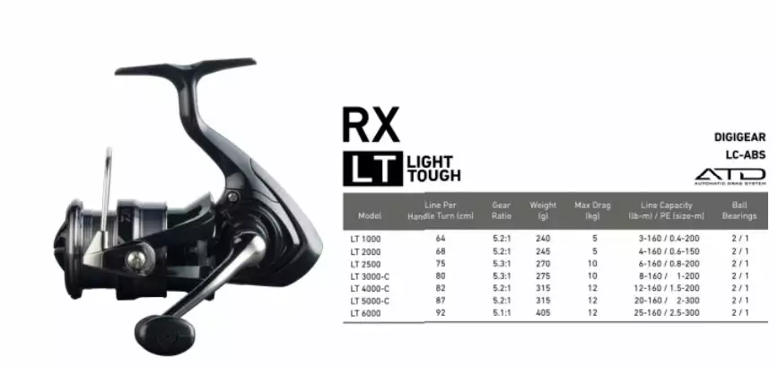 Daiwa’s LT (Light & Tough) principle, is now available in RX LT.