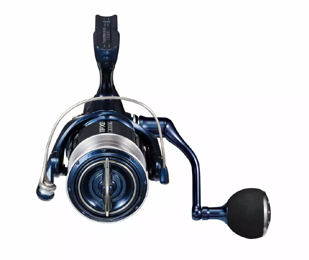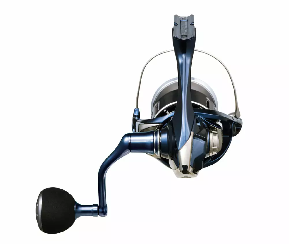 A magnum light rotor that uses a rotor structure that is asymmetrical to the left and right, and achieves a different level of rotational lightness in search of improved operability and sensitivity. Furthermore, we have succeeded in reducing the rotational inertia by reducing the weight of the line roller, making the bale titanium, and optimally arranging the rotor wall thickness.